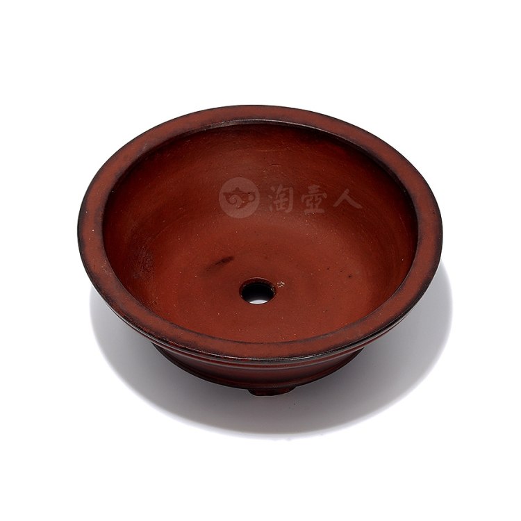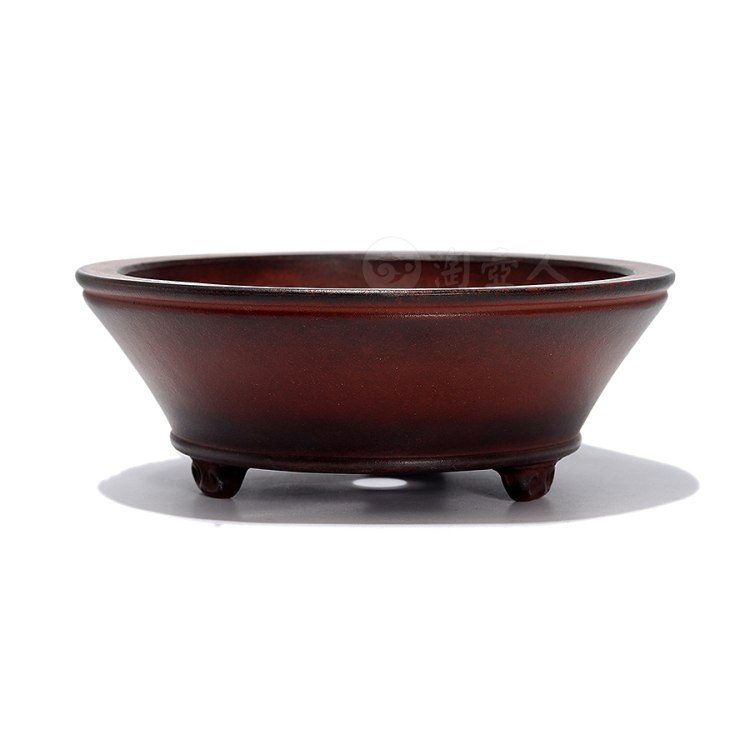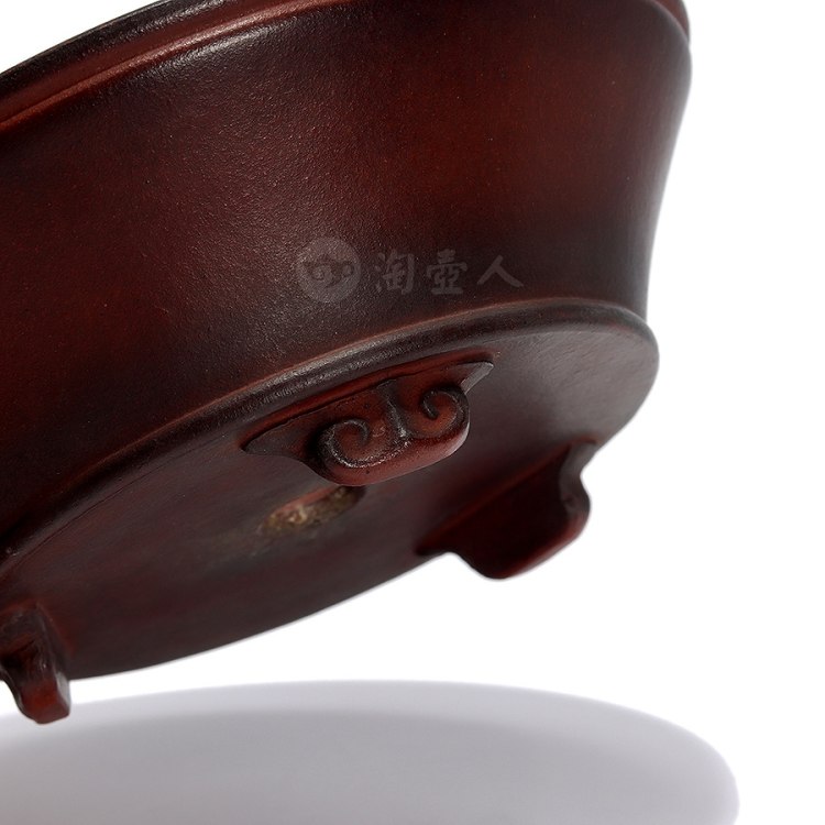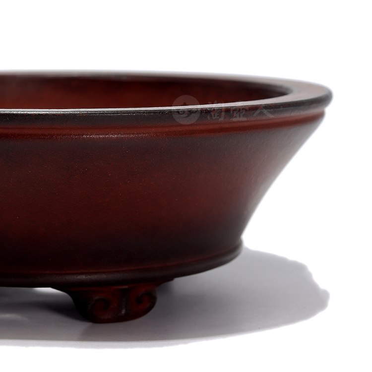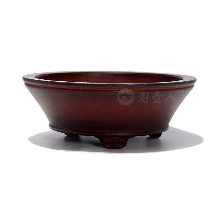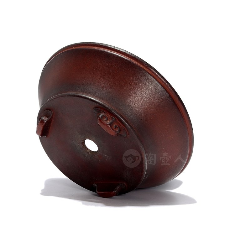 清代中晚期紫泥如意三足圆菖蒲盆,无款,口径13,高5公分,全美品,皮壳浑厚。泥料窑温做工极佳,线条流畅有力,实为养蒲妙品,视觉效果绝佳。