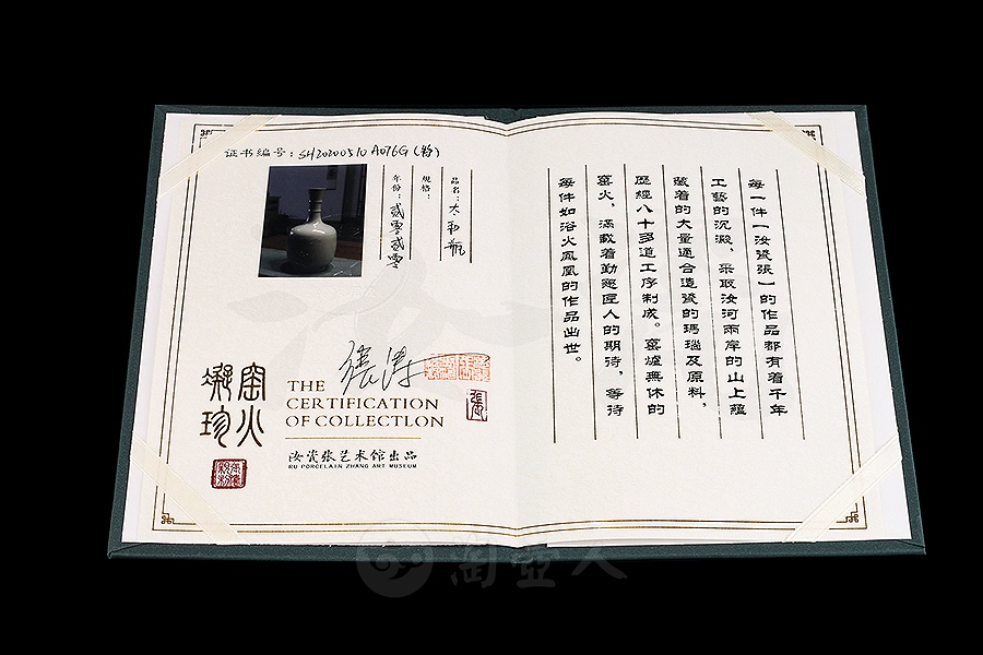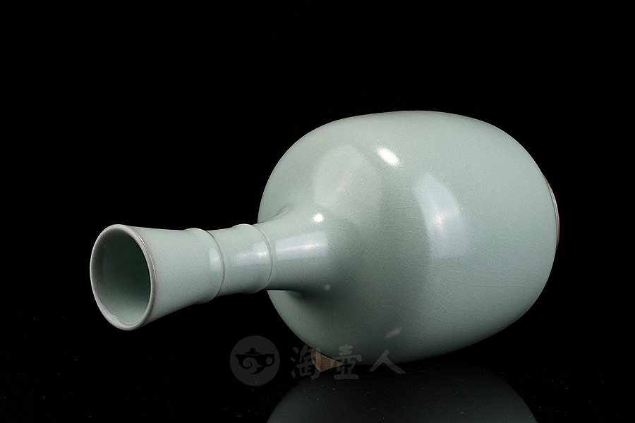 通体施仿古釉,釉如青天,釉面莹润如玉,鳞鳞如波的纹片之美,形成了和谐优美、神韵气足的艺术珍品,令人爱不释手。釉色古朴,不事张扬的形制风格,庄重典雅的美学风范,把宋代青瓷制作技艺又重新展示给了世界。