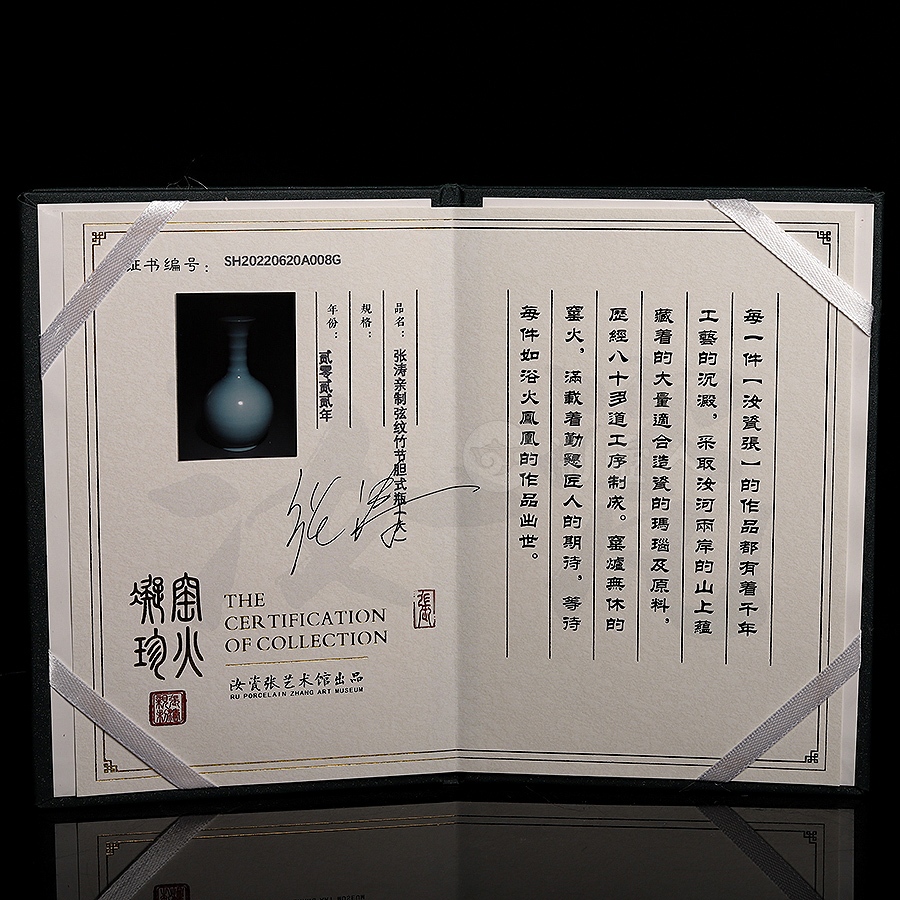 张涛,男,1970年出生汝瓷故里汝州,河南省工艺美术大师,河南省陶瓷艺术大师,汝瓷非遗代表性传承人,汝瓷柴烧技艺复原人,天津大学感光学院特聘教授。自幼在父亲的熏陶下对汝瓷制作技艺非常热爱,1987年跟随汝瓷复烧第一人郭遂先生学习汝瓷制作工艺,跟师傅以及父亲学习汝瓷烧制十余年。1998年,在父亲的指导下,建造一立方煤窑试验窑,主要从事于汝瓷天青、月白的试验研究。2015年注册了国家商标“汝瓷張”,主攻馆藏传世件的复原,多件作品被国内外知名收藏家的私人博物馆收藏。其作品工艺精湛,艺术力强,常年受到国内外藏家的高度关注,并举办多次个人作品展,荣获各项国家级荣誉奖项,是汝瓷当代的中坚力量。