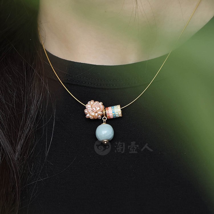 首页 汝窑 首饰知瓷制双笙花项链(粉)