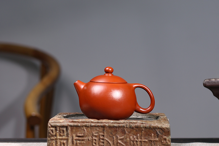 查看作品采用了原矿老朱泥制作而成,壶容量为180cc,壶体线条舒缓柔美,简练俊美,此壶通身丰润饱满,有如雍容华贵之意,如亭亭玉立美女,温婉圆润而又清新可人,壶型简单却把传统壶型的特点表现得恰到好处,观此壶你会有一种心境明朗,超凡脱俗的快感,短促直流型壶嘴更显得娇小可爱,为此壶增添了几份韵味,倒耳型壶把的设计亦是此壶的特点之一,似有与壶嘴遥遥相望之意,而截盖的设计使得整个壶从远处看如同一精美整体。