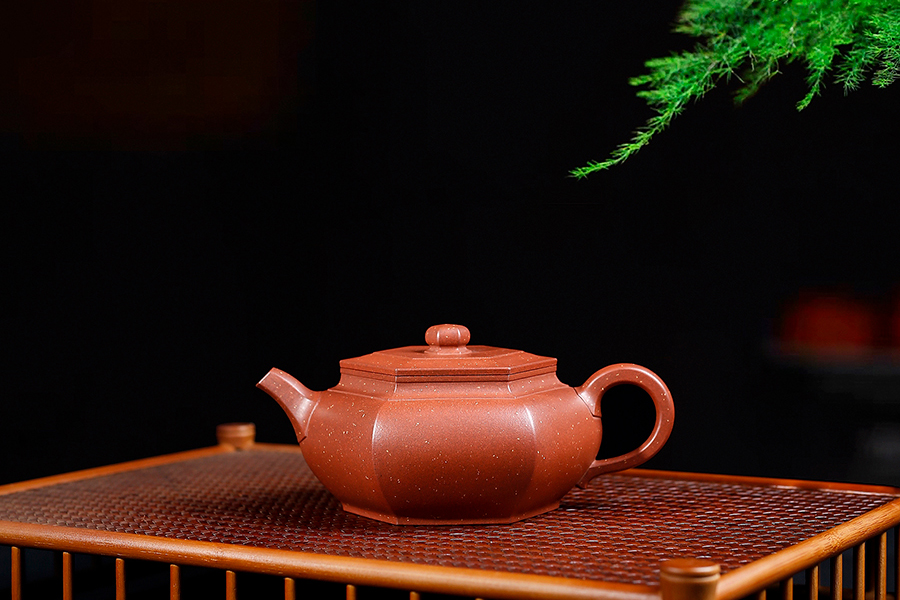《大彬六方茗壶》是华健老师采用原矿老紫泥铺砂工艺制作而成。