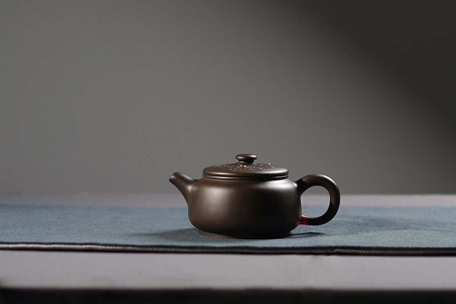 鲍仲梅的紫砂嵌银技术坐中国第一把交椅,仅是鲍仲梅的名字就值数万元,受到众多紫砂爱好者及收藏家的追捧。《红砂黑璧》的造型十分古拙大气,壶身敦厚,流露出一股仙风道骨的气韵。作品简洁的线条,光洁古拙的造型,如一枚天然的玉璧,温润如玉的光泽,使一颗燥热的心逐渐平息。