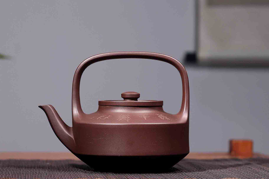 查看作品提璧壶式原由高庄教授和顾景舟大师共同设计,并由顾景舟大师首创,两位大师的珠联璧合使这一壶式成为经典之作。此壶盖面似一古雅玉璧而名,壶体扁圆柱形,平盖,圆壶口,圆颈并装饰一个环线,扁圆纽,扁提梁,微曲线造型,结构严谨。壶身由吴东元陶刻装饰“德唯取友,善在尊师”,落款“半丁”。整壶刚中带柔,和谐匀称,虚实有度,颇有景舟题壁之风范,值得收藏。