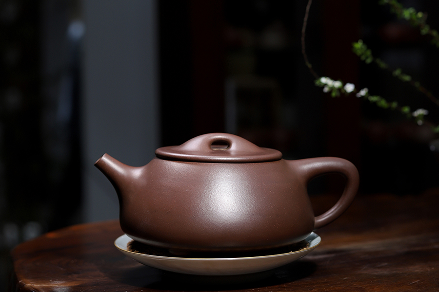 查看作品此壶为作者于紫砂一厂时,在父亲徐汉棠指导下,选用原矿老紫泥全手工精制而成。泥色成熟稳重,韵味十足。壶身呈“金字塔”形,丰润饱满,曲线柔和流畅,造型浑厚朴拙。拱桥型壶钮美观大方,直流嘴出水有力顺畅,壶把上粗下细,把持舒适,三只棋足支撑整个壶体,更显几分轻盈。