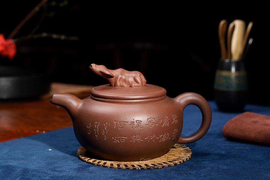 查看作品此壶为七老艺人之吴云根创作的超大品,采用原矿老底槽清,由三位作者全手工精制而成,距今已有近百年的悠久历史,在岁月的浸润中色泽更显温润雅致。壶身饱满挺阔,平盖之上塑一牛俯卧于上,昂首哞哞,意趣盎然。弯流挺括,出水爽利,与壶钮之角度相呼应,圈把圆润,把握舒适,整壶比例掌握得恰到好处,线条流畅优美,朴致大方,饱含古韵之风。