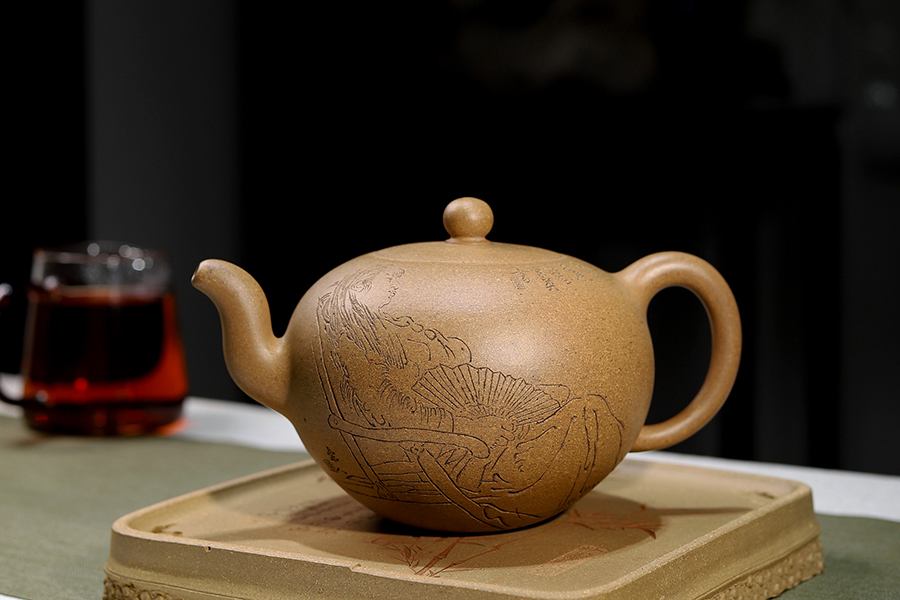 季益顺全手工制一粒珠壶(何家英书画·鲍志强刻)