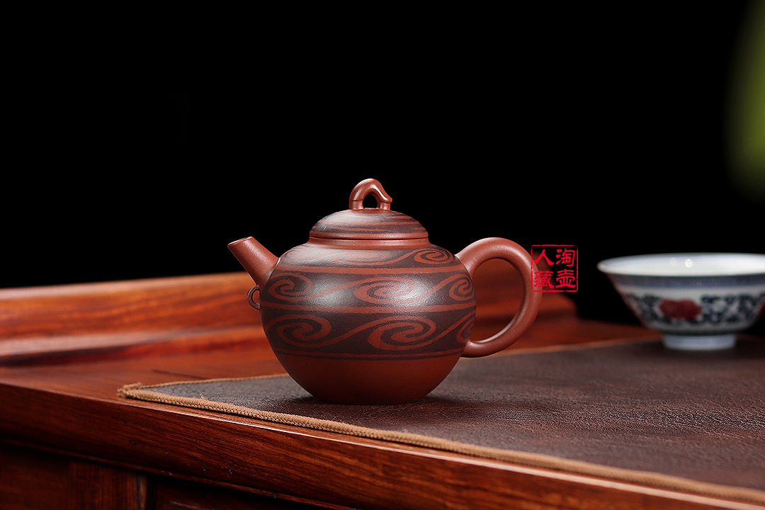 壶身装饰堪称点睛之笔,采用嵌泥技法,施以经典勾旋纹,纹路需嵌填、修坯、烧制一系列流程,工艺相当繁琐,稍有不慎便前功尽弃,成品率极低,其工艺难度与艺术价值可见一斑。最终呈现的效果浑然一体,纹饰贴服而灵动,宛如穿越千年的文化印记,在壶身绽放出厚重而鲜活的艺术光彩,实为集文化传承与工艺创新于一体的收藏佳品。
