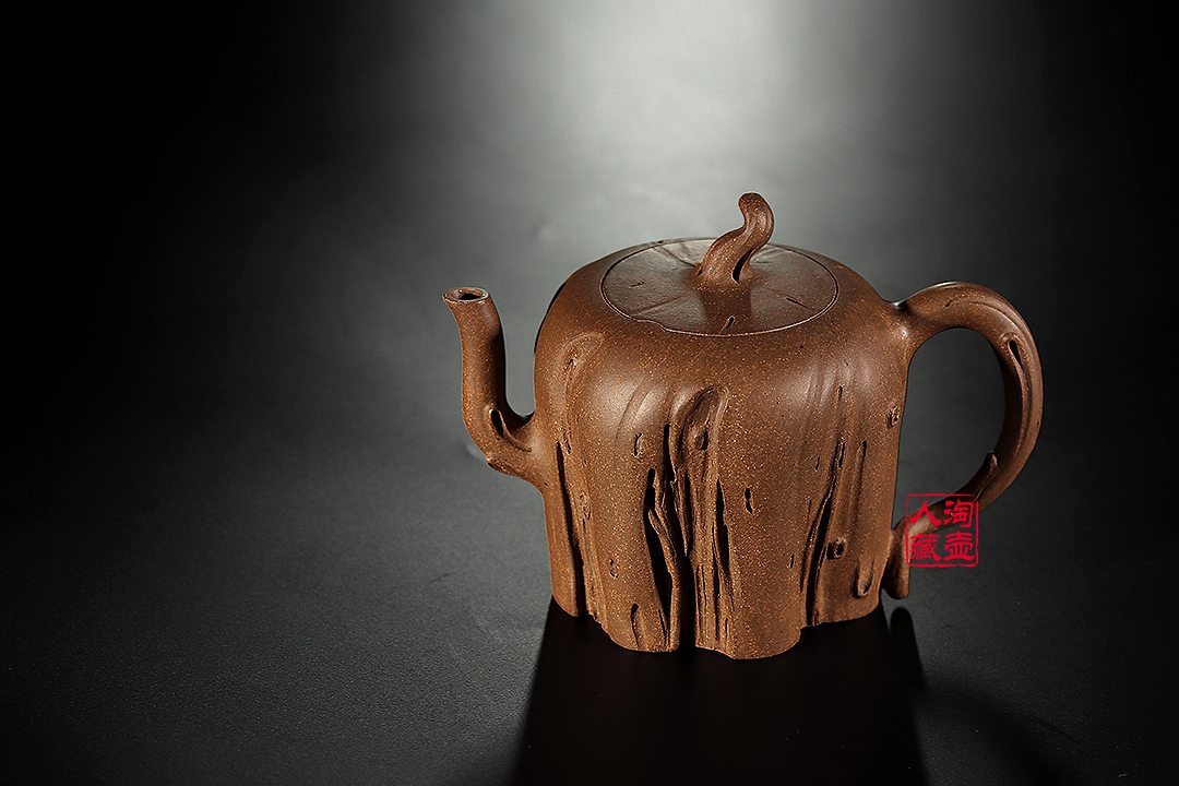 此壶为作者选用原矿青段泥,全手工精制而成,泥色清丽,古朴端庄。整器用简洁的线条,勾勒出挺秀的形体,壶身作一截高树桩,肩线柔和圆润,钮、流、把宛若枝干虬曲而出,苍劲斑驳,形态优美。整壶清雅娟秀,工艺精良,对肌理细节的刻画细腻到位,极富自然之美,是一款值得入手的高性价比花器。