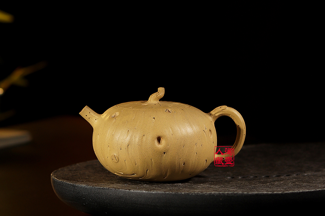 此壶为作者选用原矿段泥,全手工精制而成,泥色清丽,古朴雅致。壶身扁圆饱满,斑驳的树干纹理,塑就与众不同的肌理效果。钮、流、把宛若枝干胥出,比例相得益彰。整壶工艺精美,刻画到位,极富自然之美,非常精妙地诠释出老树的历练感,带有一种收敛的内在美,赏用俱佳,是一款值得入手的高性价比花器。
