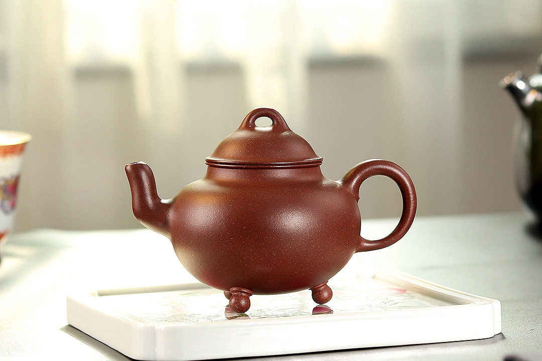此壶为作者选用原矿底槽清,全手工精制而成,呈色温润朴雅,150CC造型精巧。壶身圆融饱满,气韵充沛,线条流畅,肩颈柔和。口盖吻合严密,压盖高鼓,上立桥钮,足作三球,趣味颇丰。弯流自腰腹胥出,遒劲蕴力,耳把纤巧秀雅,持握称手。通体光素无纹,各处比例协调,全手精工,古意浓厚,上手把玩利器,老茶客荐入。