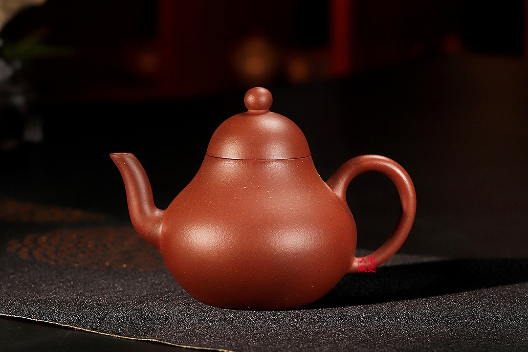 此器身如葫芦,骨肉亭匀,挺拔俊秀,长弯流自壶腹自然胥出,圈把秀丽,截盖与壶身相合,吻合严密,珠钮玉润,整器简洁古雅,韵味十足,线条优美雅致,藏用俱佳之器也。