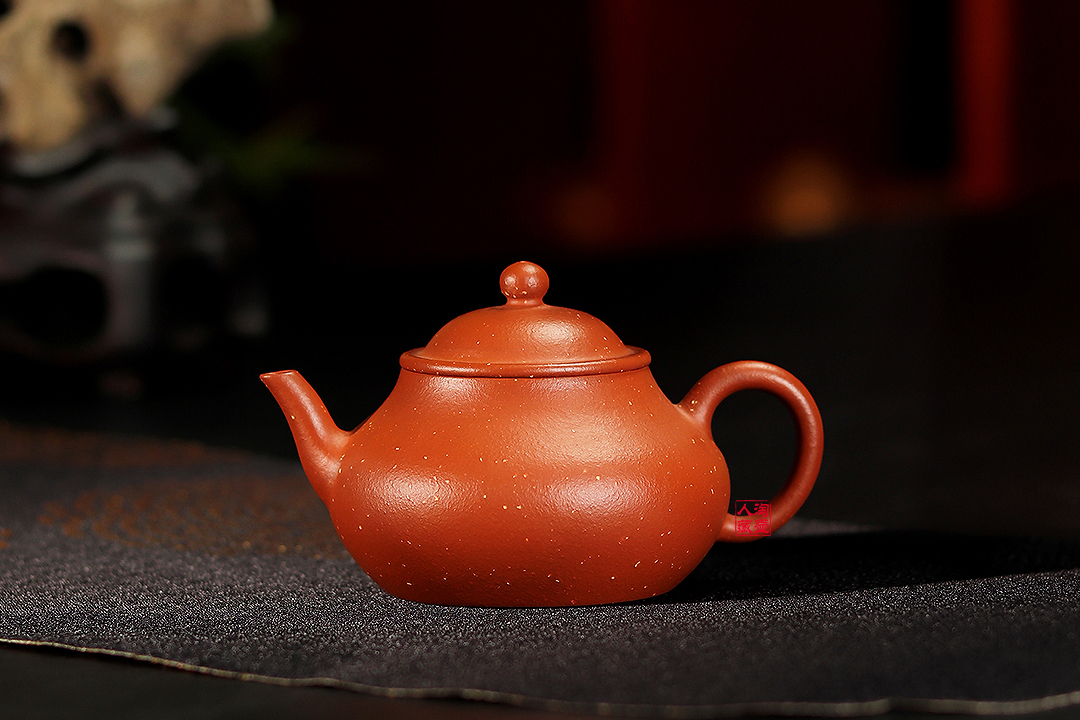 此壶容量140CC,小巧一把,演绎出迷人的东方红韵,给使用者带来愉悦的品茗享受,是朱泥小品壶中的实用佳作。