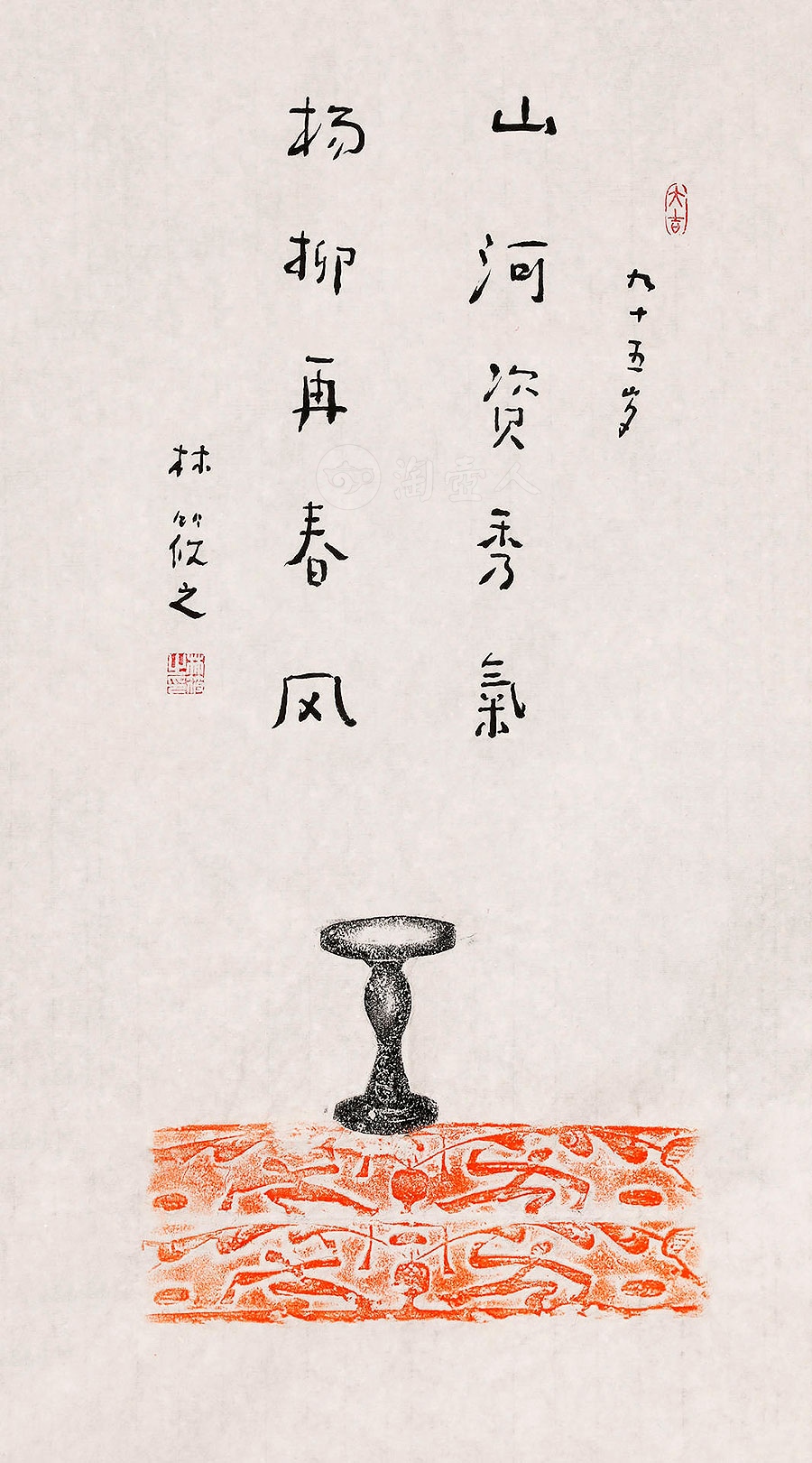 林筱之(1928-2023),书画大师林散之之子,世称 “当代唐伯虎”。三岁识字,五岁随父学书画,后师从黄宾虹,六十载临习黄子久、石涛等名家画作,兼学二王、颜真卿等碑帖,书风近父,平稳秀逸,笔含灵气。其 “钩手” 执笔、悬腕中锋得父传,尽显一家风骨。