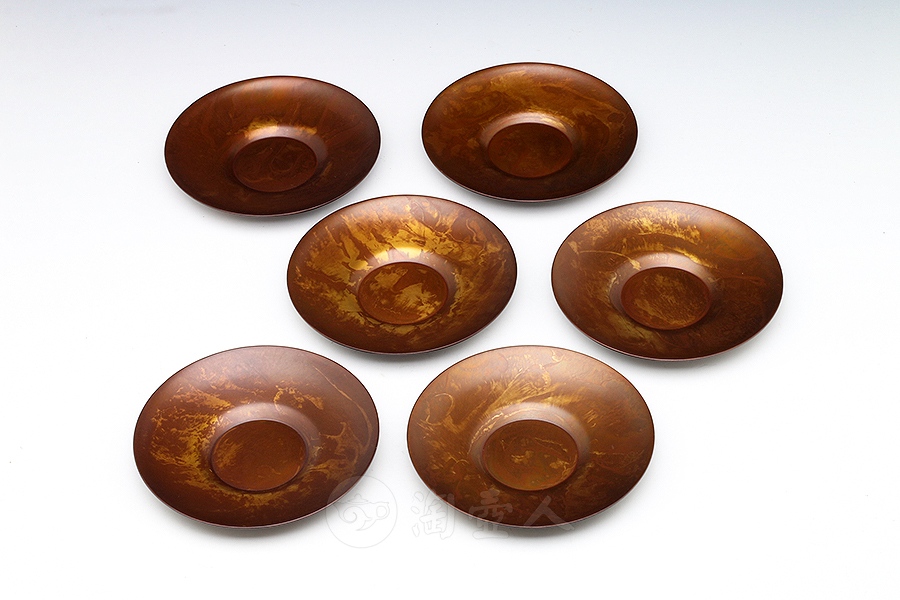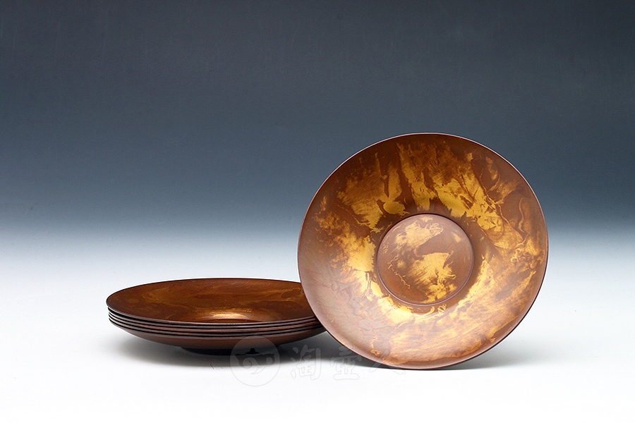 纯紫铜打造,精制“斑斓彩”装饰。金色的流火般的花纹,既象征着铜在火中锻造,又蕴含着茶在火上焙烤。寓意美好,工艺繁复,纹样各异,与铜面相得益彰。