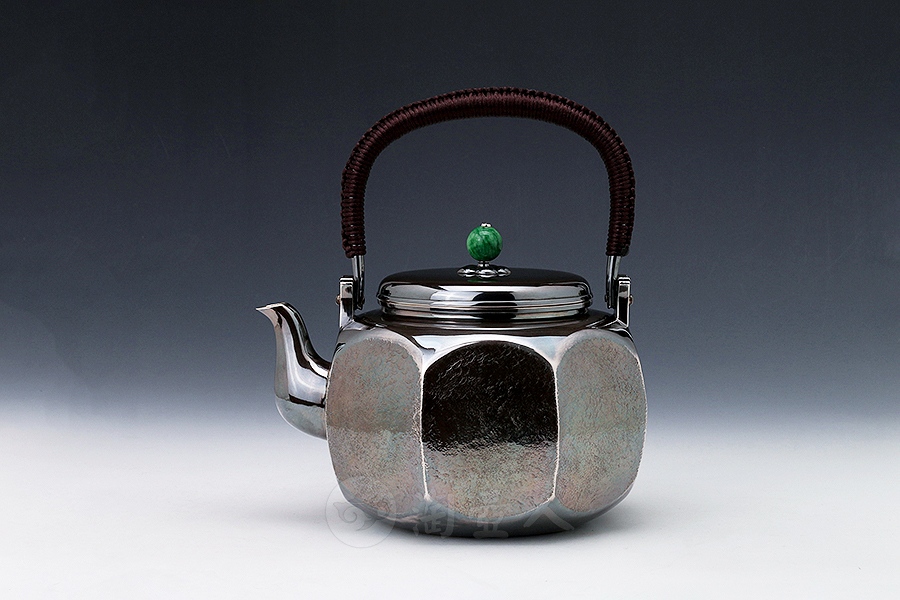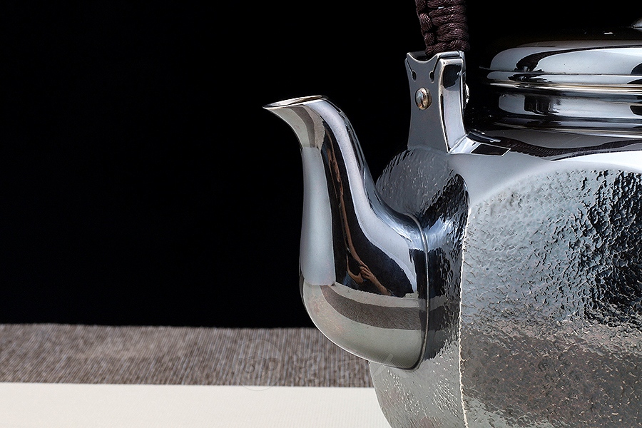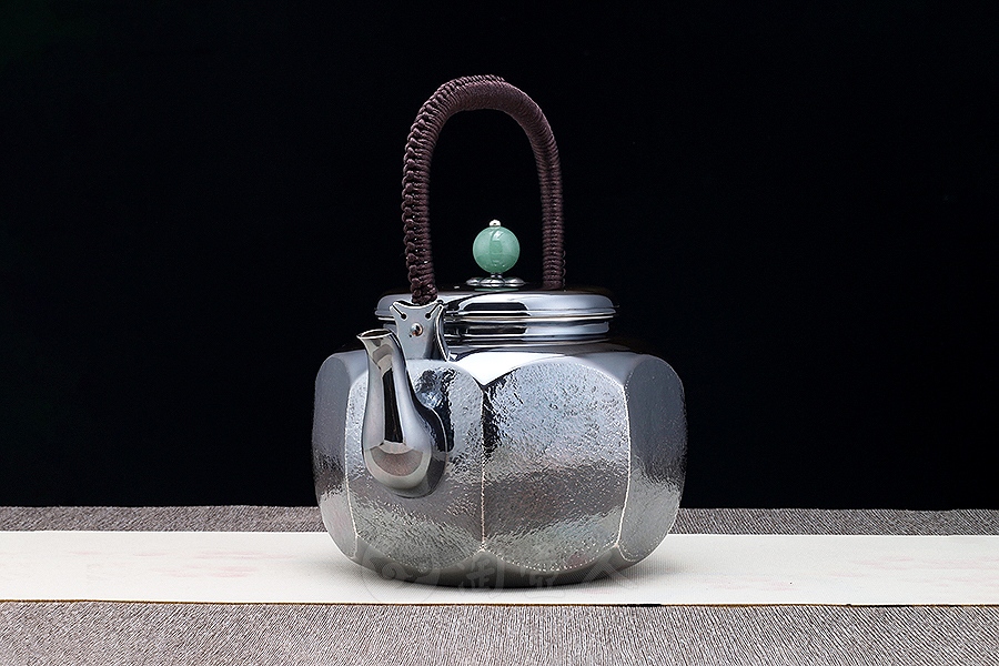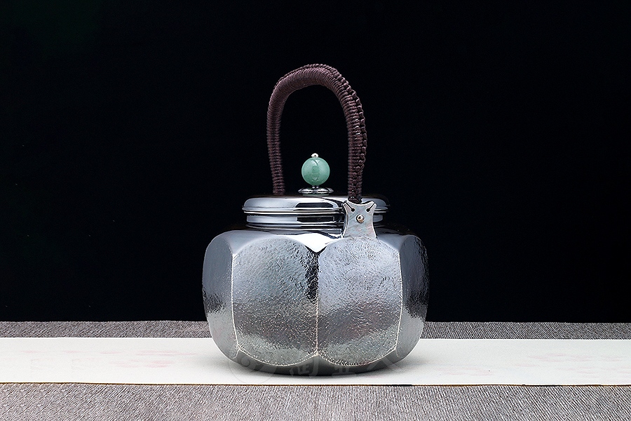 精选纯银S999全手打造而成。将雪花银的光鲜亮丽与做旧的壶体形成鲜明对比。
