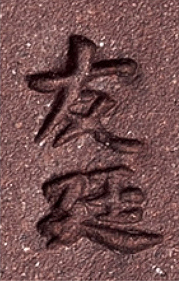 尤其擅长制作方圆器和加彩壶,盖有“友廷”两字的椭圆形阳文篆印。