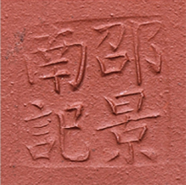 壶底常用“邵景南制”线框阳文楷书印,口内常用“景南”坚定椭圆楷书章。