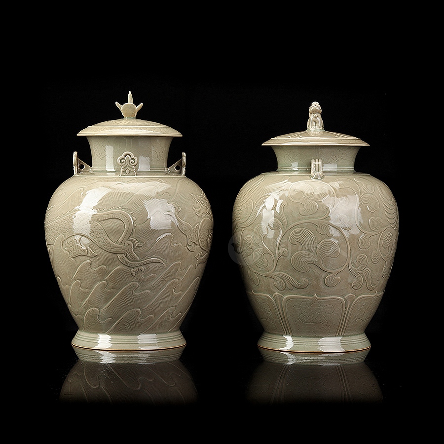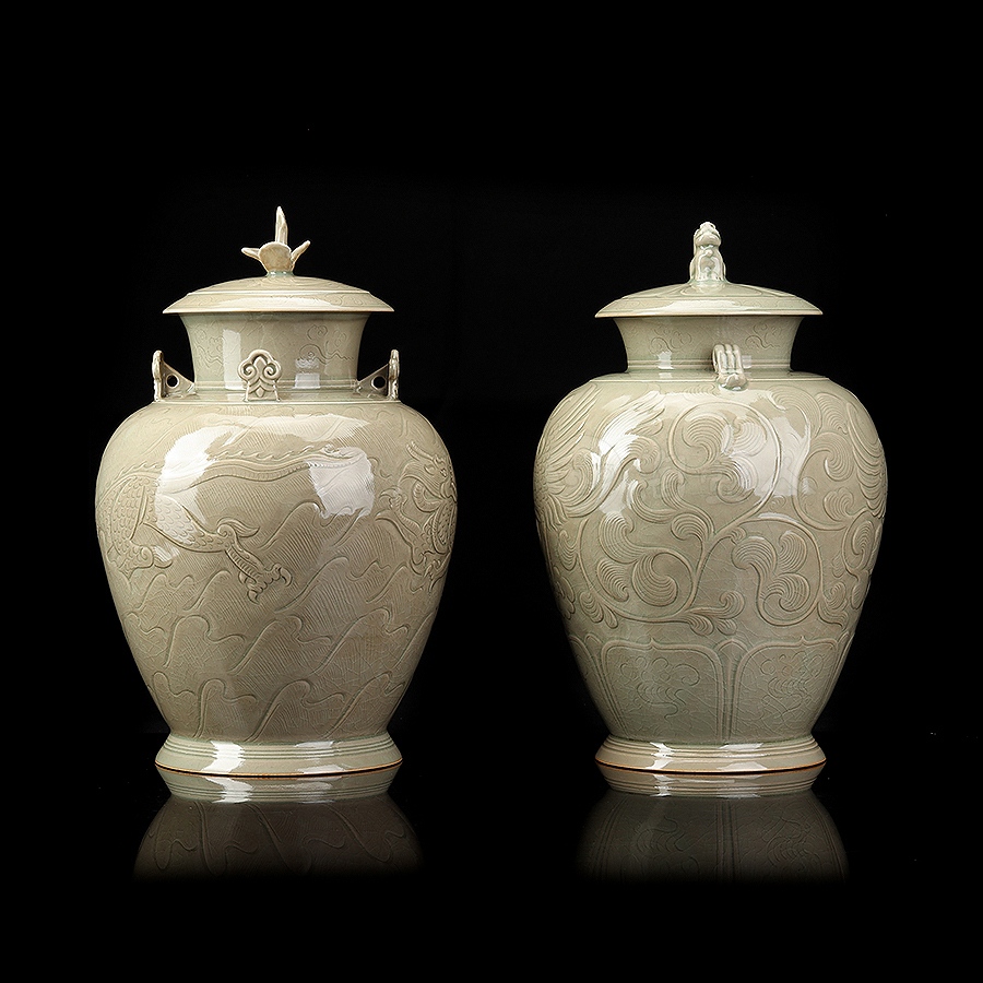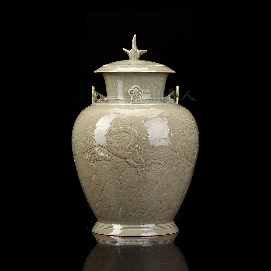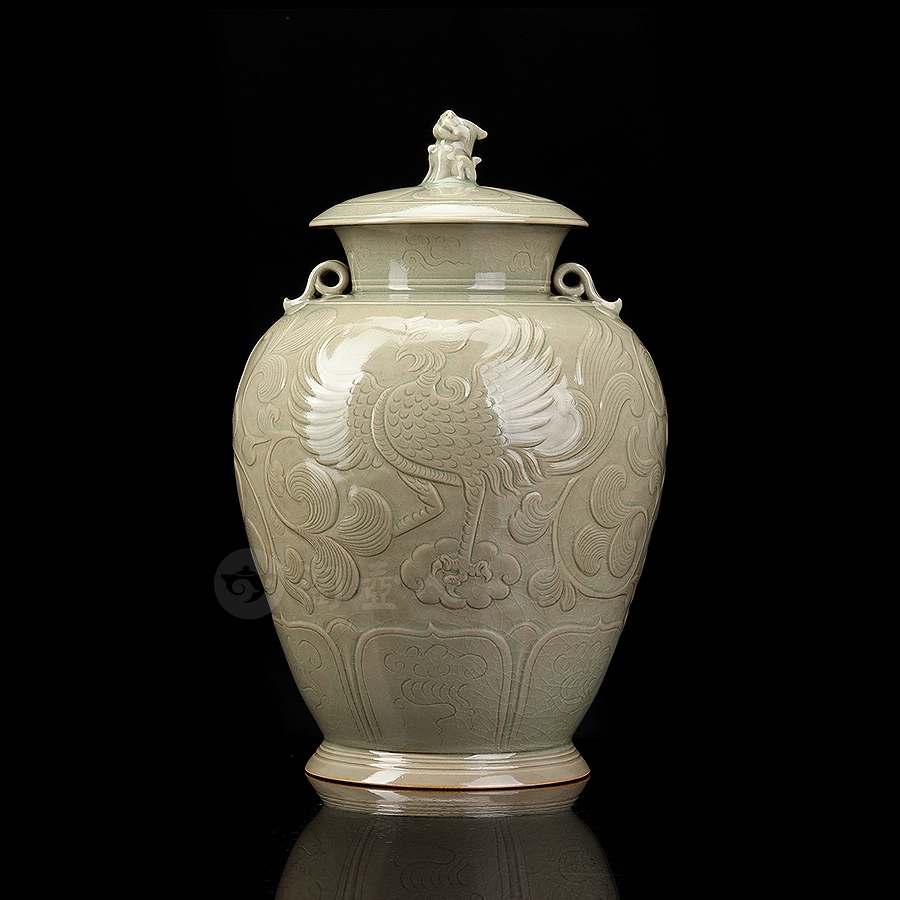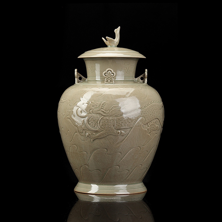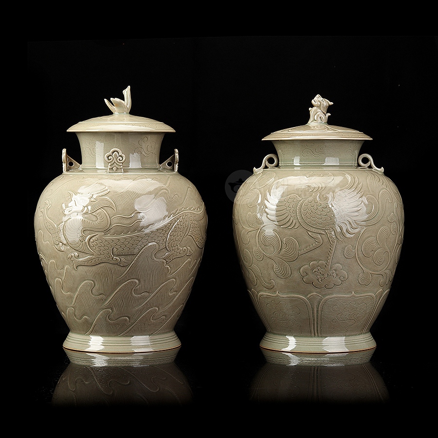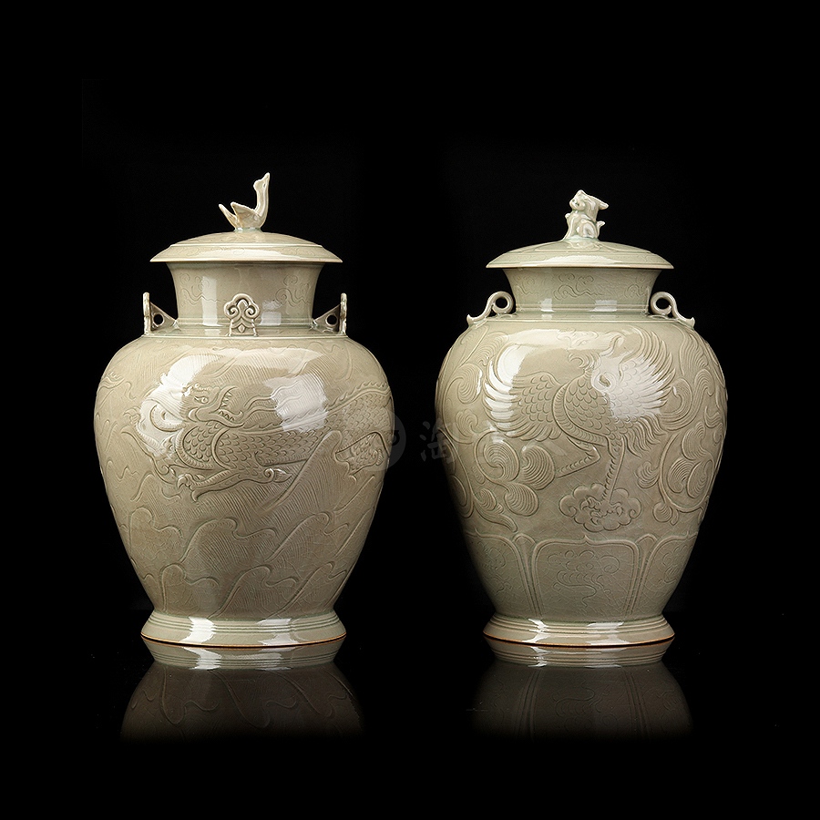 首页 越窑 张博制《兽鸟座龙凤罐》