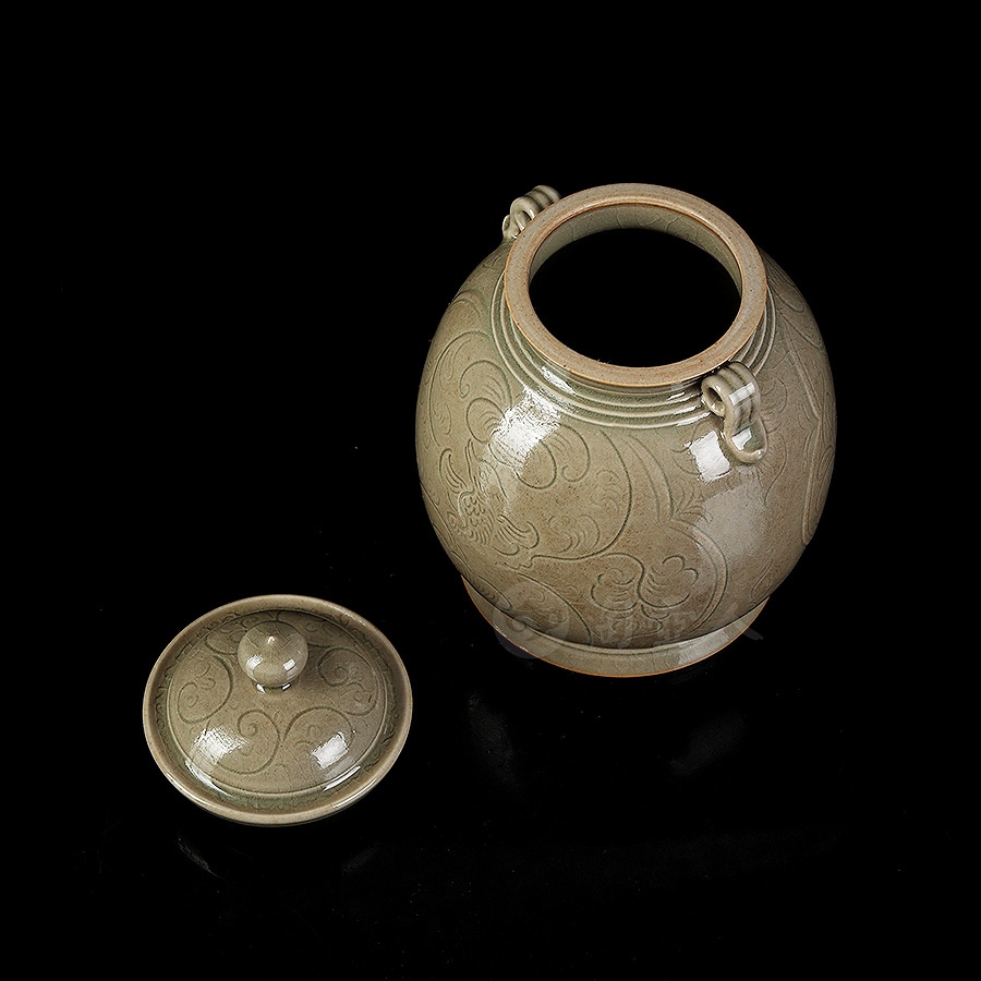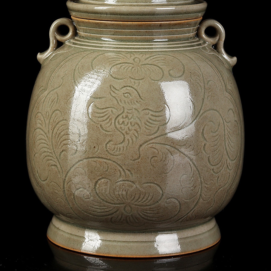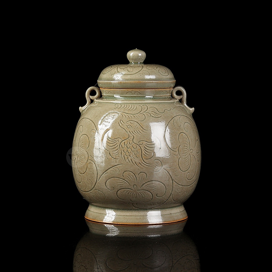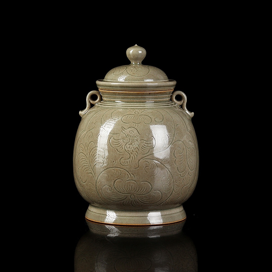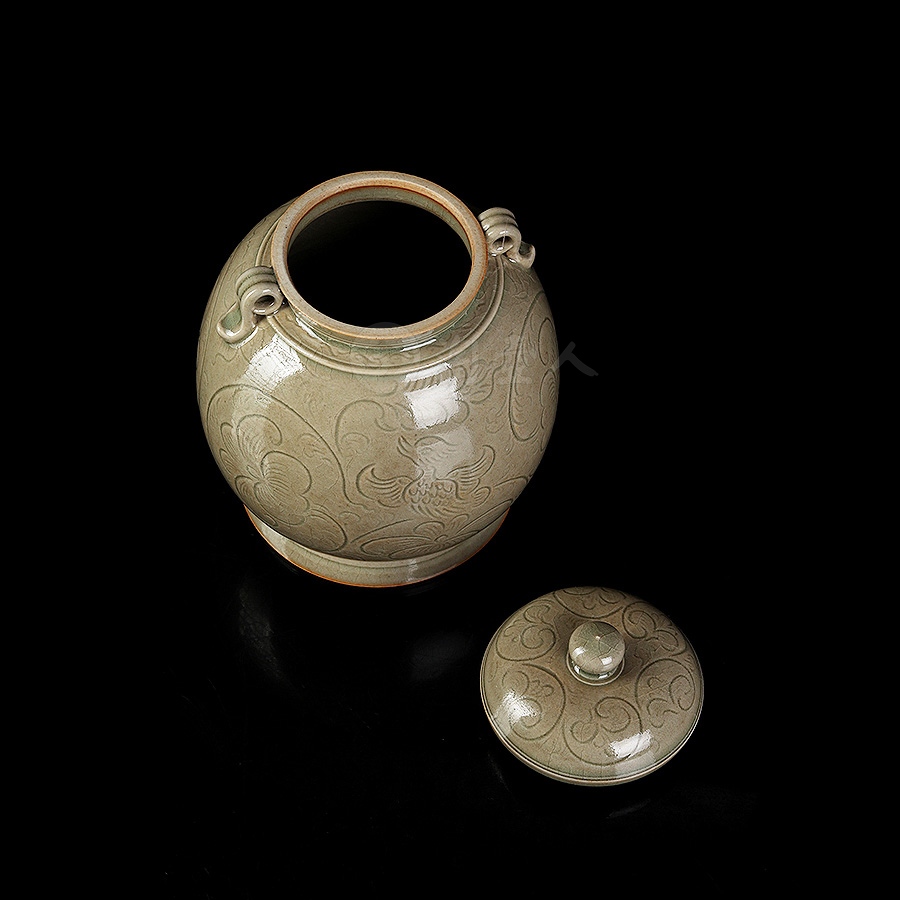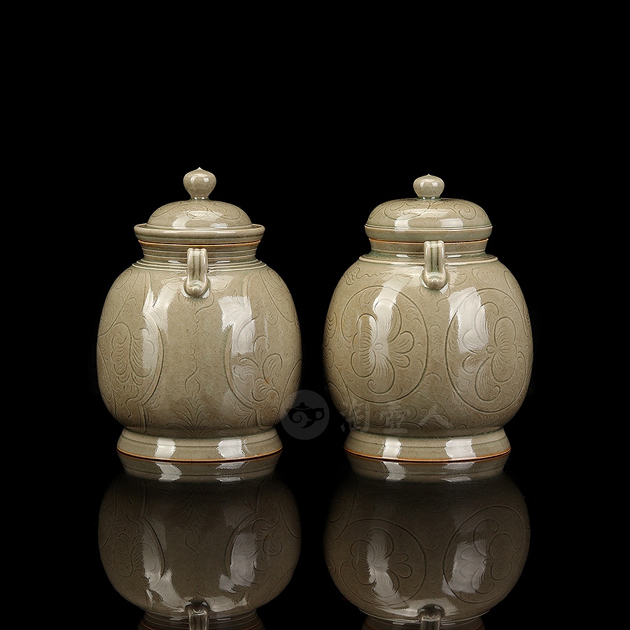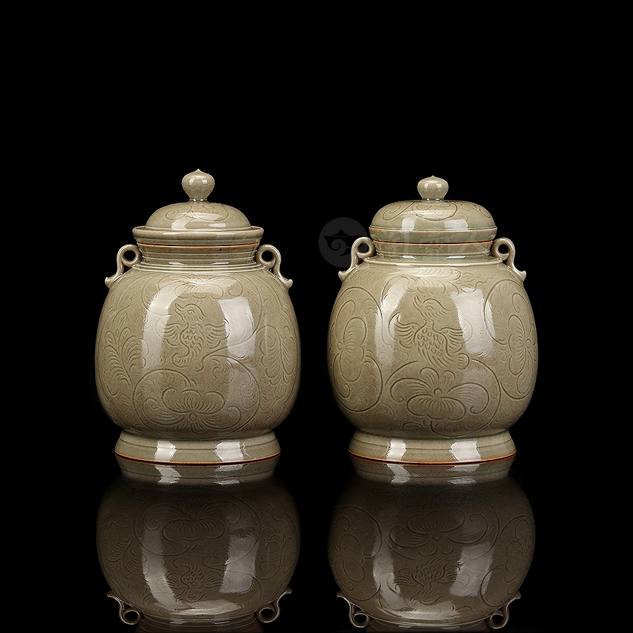首页 越窑 张博制《双系花间飞鸟纹盖罐(对)》