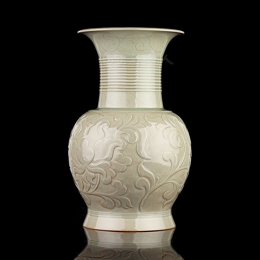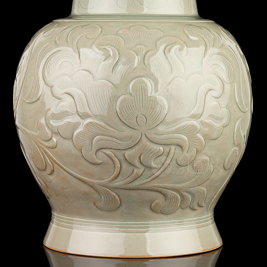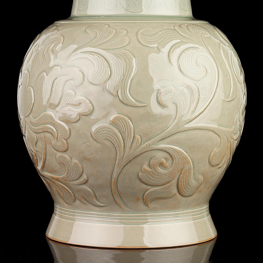 腹部采用经典半刀泥刻花技法雕琢凤尾花,刀法灵动娴熟,入刀深浅有度,线条粗细变化自然,花瓣的舒展、花茎的婉转皆刻画得栩栩如生,立体感十足,让整朵凤尾花仿佛正在瓶身悄然绽放,赋予器物鲜活的生命力。